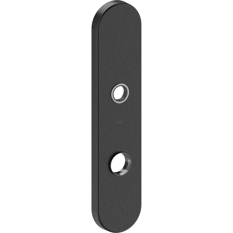 Surface en acier inox PVD noir, avec 3 ergots de filetage, pour vissage par paire avec plaque intérieure 58540, utilisable sur portes anti-effraction RC2 / ES1, combinable avec toutes les poignées Glutz avec col Ø 18 - 22 mm ou avec poinçonnage ovale pour montage fixe sur bouton, testé selon EN 1627-1630, sans set de vis, sans insert de protection