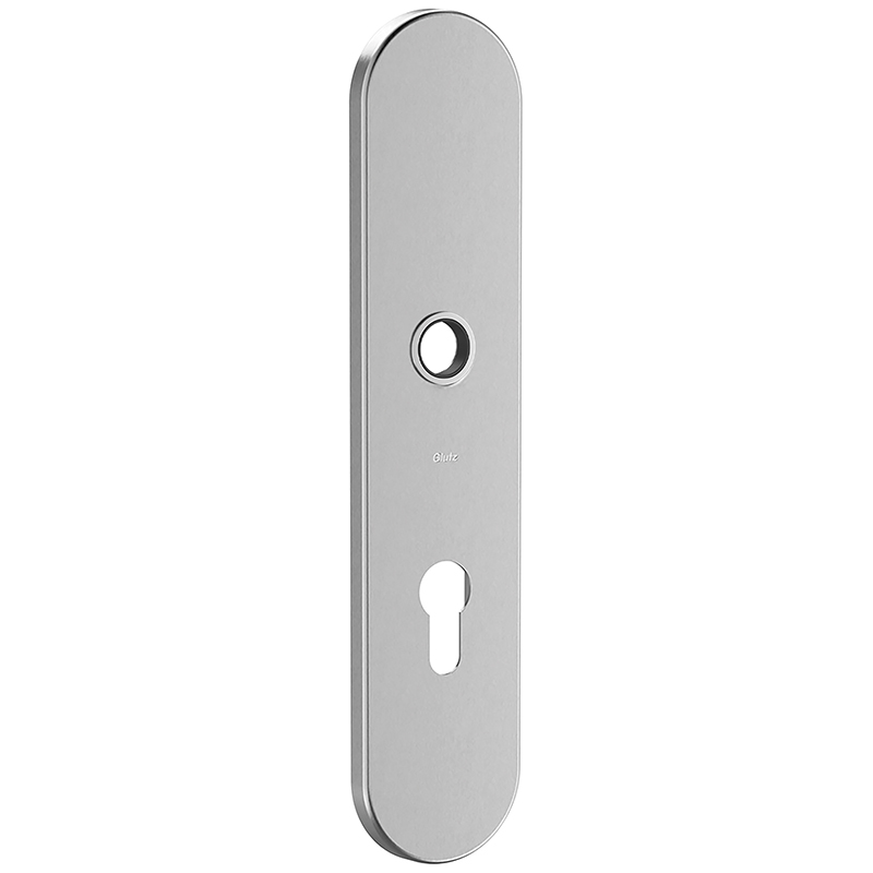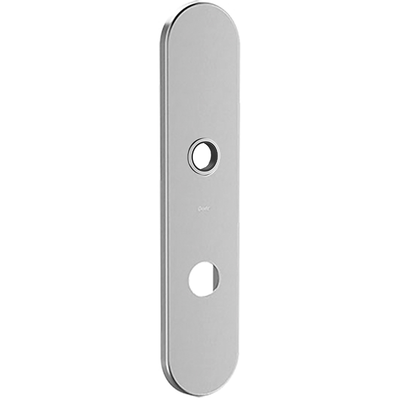 Surface en acier inox mat, avec 3 ergots filetés, pour vissage par paire avec plaque intérieure 58540, la plaque longue convient aux grandes portes lourdes ainsi qu'aux portes très fréquentées avec ferme-porte, grâce à la plaque de base massive et au vissage continu, elle offre une stabilité particulièrement élevée pour les portes où un carré divisé est utilisé pour les serrures anti-panique, combinable avec toutes les poignées Glutz avec col Ø 18 - 22 mm ou avec estampage ovale pour montage fixe sur bouton, sans set de vis