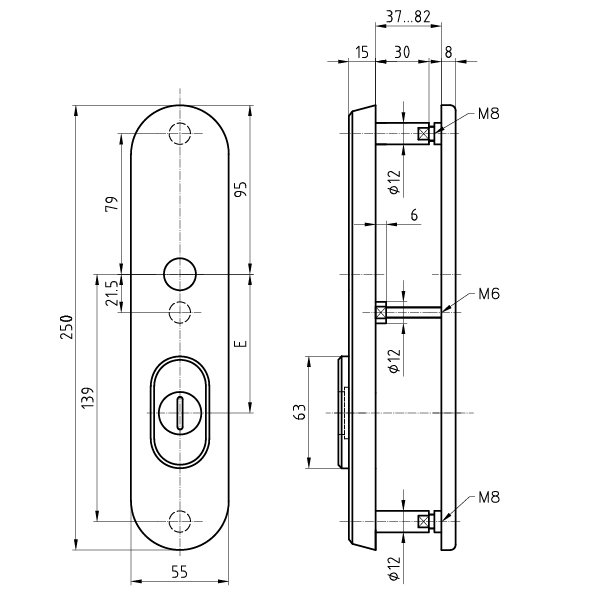 Inox massif mat, avec guidage 16 mm pour poignée avec Ø de collet 20 mm ou avec estampage ovale pour montage fixe de boutons,