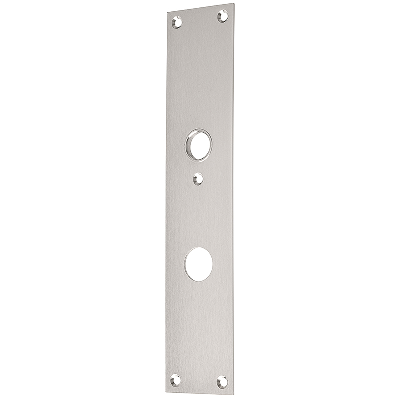 Laiton nickelé mat, guidage 16 mm, percé pour vis M5 pour vissage par paire avec plaque extérieure de sécurité, pour harmonisation optique si des plaques plates sont utilisées à l'intérieur, milieu du trou de vis supérieur jusqu'au milieu du guidage de la béquille 74 mm, sans vis