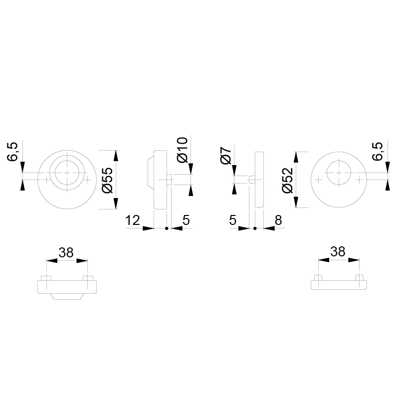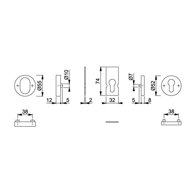 Rosace extérieure massive, dimensions 55 x 12 mm, avec 2 ergots filetés M5