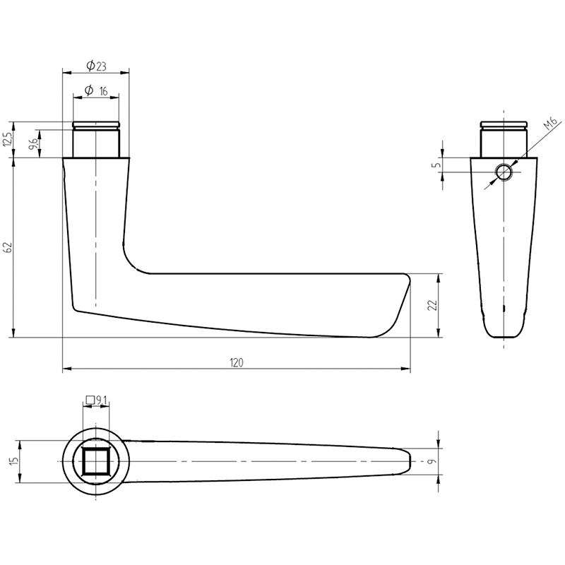 trou de vis supérieur jusqu'au centre du guidage de poignée 62 mm