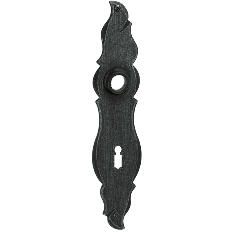 fer forgé galvanisé et patiné, guidage de poignée 18 mm, trou de vis supérieur jusqu'au centre du guidage de poignée 80 mm, avec vis