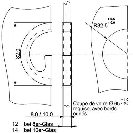 Poignée cuvette pour portes verre