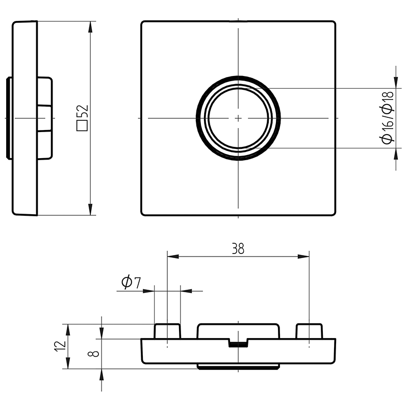 Rosace de poignée à clipser MEGA 34.180, carrée, pour Ø 16 mm