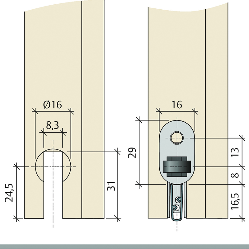 -module de pivot Planet "en feuillure", pour Planet US, avec module de déclenchement, y compris rallonge de profil intérieur