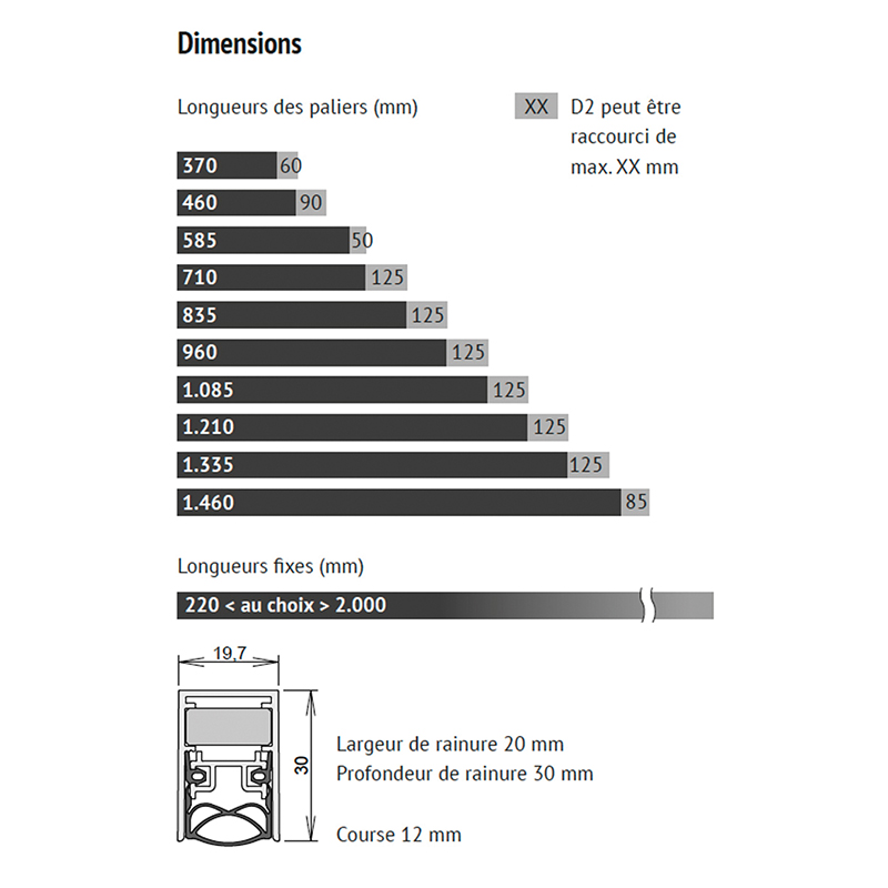 - Longueur fixe 710 - 1500 mm sur demande départ usine.