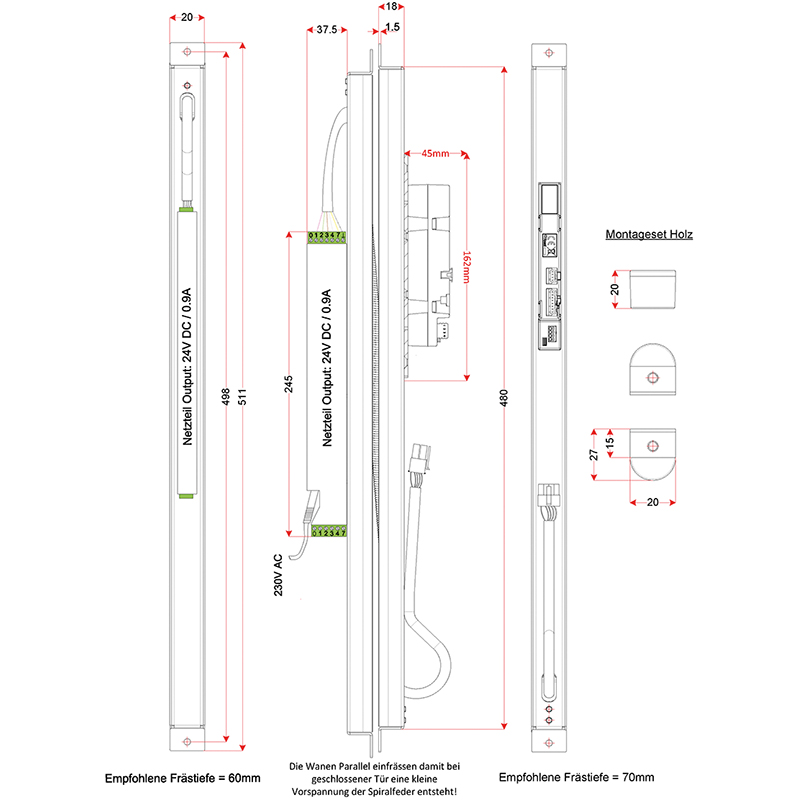 Set de biométrie GELA plug&play dLine, seau à double, à verrouillages multipoints 24V DC et poignées de lecture digitale