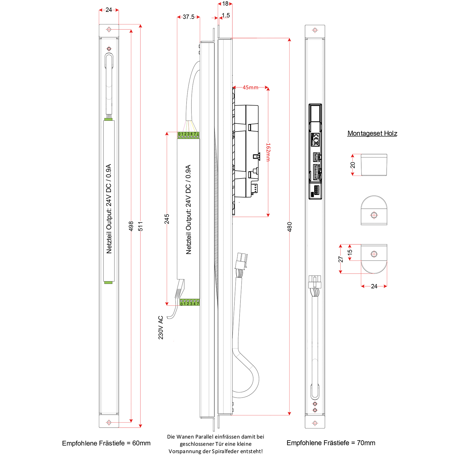 - 1 x alimentation à découpage 12VDC, 2A, 22 mm, pour montage dans l'huisserie