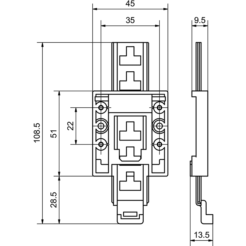 Support de rail porteur pour modules I/O (en applique) à monter sur des rails DIN,
