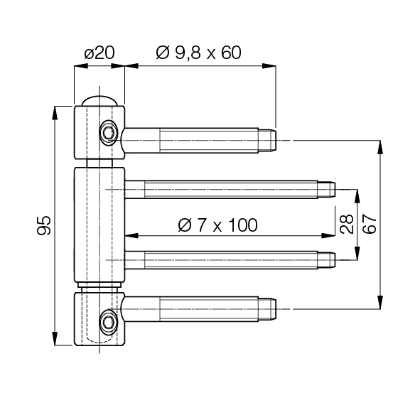 Acier, avec roulement autolubrifiant en métal fritté, rouleaux Ø 20 mm, réglable en hauteur - 1 à + 3 mm, réglable latéralement ± 4 mm, sans décrochage de la porte, pression réglable ± 4 mm,