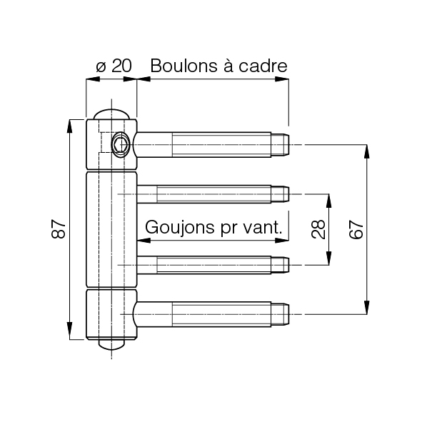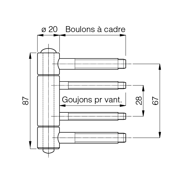 - Version avec goupille de sécurité pour portes s'ouvrant vers l'extérieur.