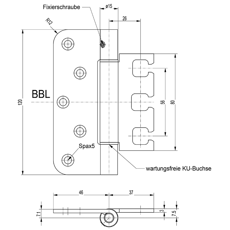 Acier inoxydable brossé, pour portes à fleur, sans entretien, avec sécurité à goupille, démontable une fois monté, épaisseur des pattes 3 mm, jeu de butée 14 mm, à partir d'une hauteur de 100 mm : pour utilisation sur des portes dans des issues de secours avec exigences en matière de protection contre la fumée et l'incendie, force portante, hauteur des pattes 120 mm, pour 2 paumelles env. 100 kilos