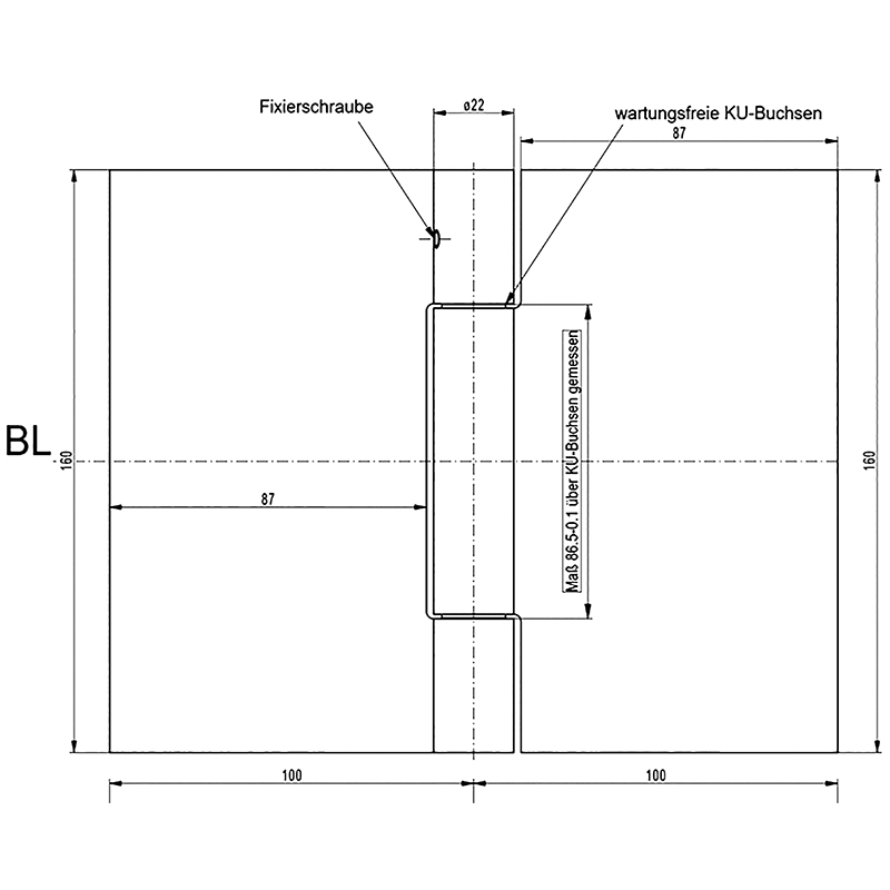 Acier inox mat, pour portes à fleur, épaisseur des languettes 3 mm, jeu de butée 3 mm, rouleau Ø 22, charge admissible pour 2 paumelles env. 150 kilos, sans trous de vis