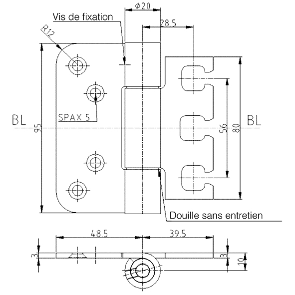- Vis à tête fraisée Ø 5 mm.