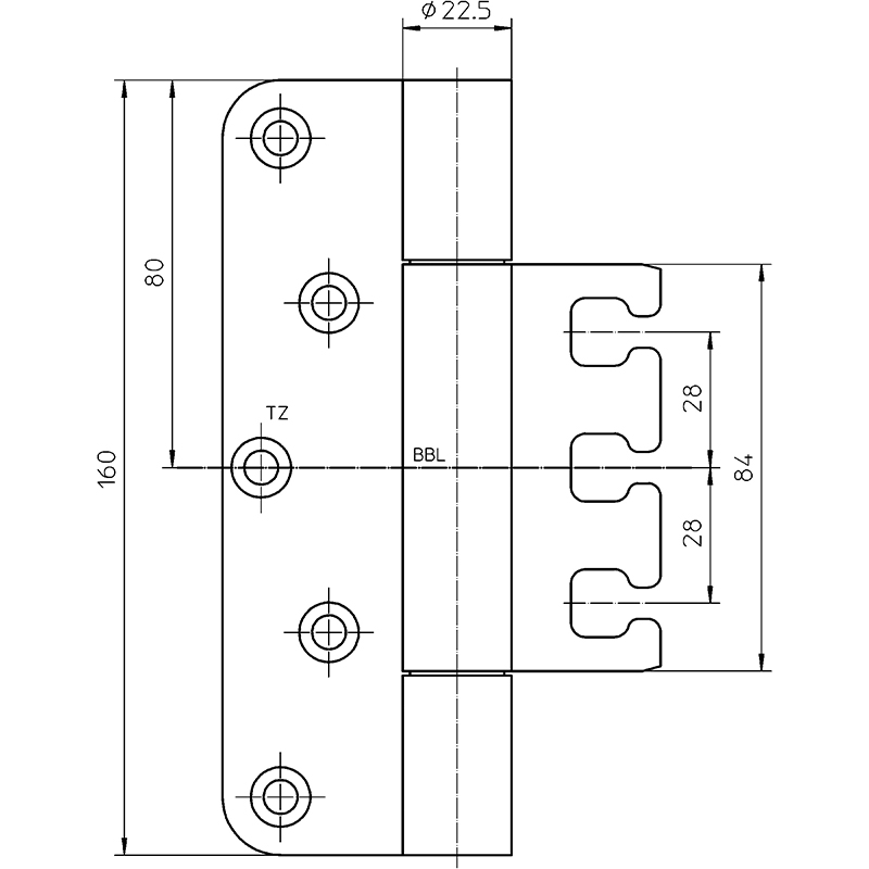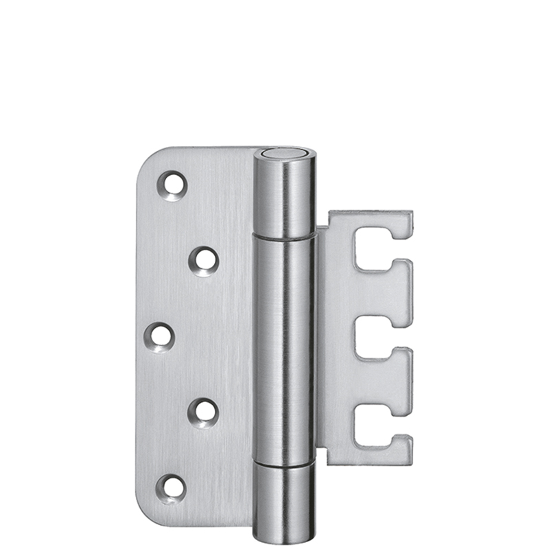 Inox mat, pour portes sans rainure sur cadres bois, acier et aluminium, tige filetée intérieure anti-torsion, paliers lisses axiaux-radiaux cachés, sans entretien, épaisseur du matériau 3,5 mm, jeu de fixation 3,5 mm, approprié pour l'usage sur le feu et de fumée protection portes selon la norme EN 1634-1, préparé pour l'élement de logement huisserie VX,