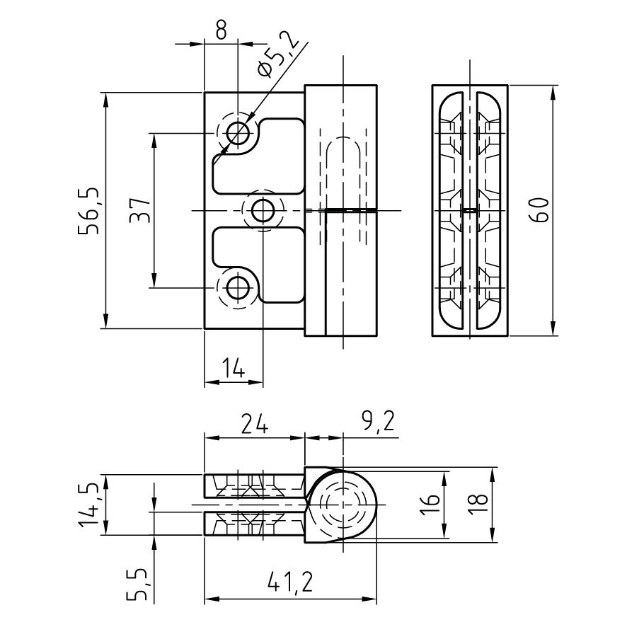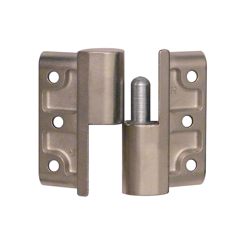 Fonte injectée, mat nickelé, avec douille et boulons acier trempés, pour portes noyées, à fraiser, jeu de fixation 4 mm,