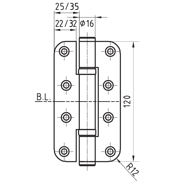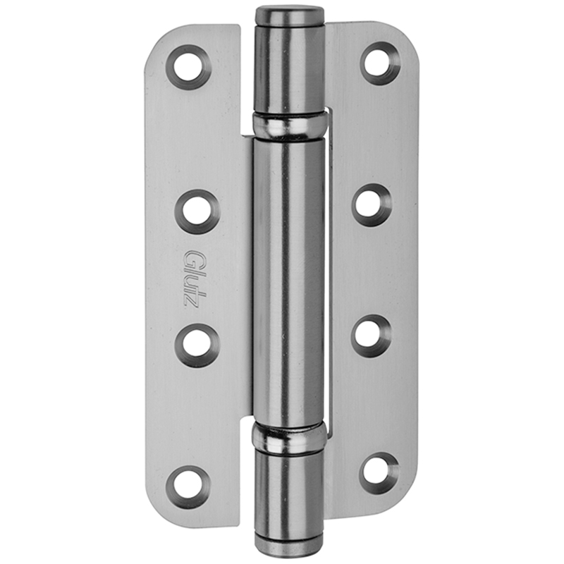 acier inox mat, pour portes à fleur, avec 2 roulements à billes visibles, avec goupille anti-torsion, épaisseur de la languette 3 mm, jeu de la butée 3 mm, capacité de charge avec 2 paumelles env. 100 kilos