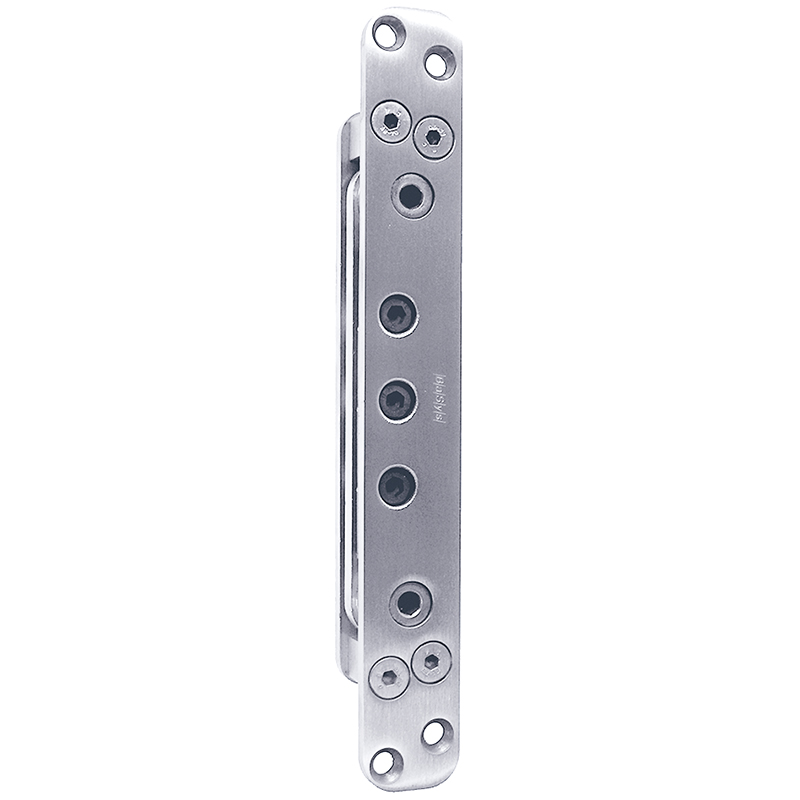 Châssis acier, angle de protection inox brossé, montage complet, découpe de protection intégré, plage de réglage de 3 mm, plaque frontale massive, réglage de la hauteur intégré à l'ajustement d'un-homme de l'élément de porte, logement de la bande avec 48 mm, force portante avec 2 fiches env. 150 kg