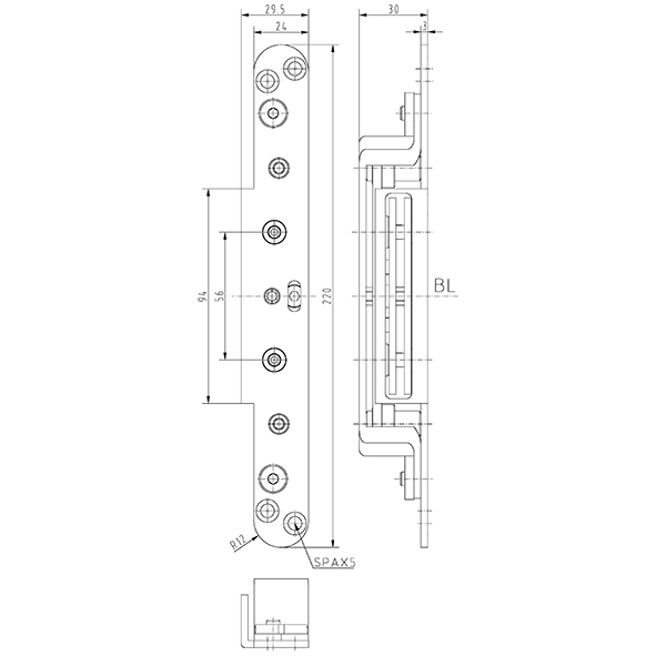 Châssis acier, angle de protection inox brossé, montage complet, découpe de protection intégré, plage de réglage de 3 mm, plaque frontale massive, réglage de la hauteur intégré à l'ajustement d'un-homme de l'élément de porte, force portante avec 2 fiches env. 100 kg