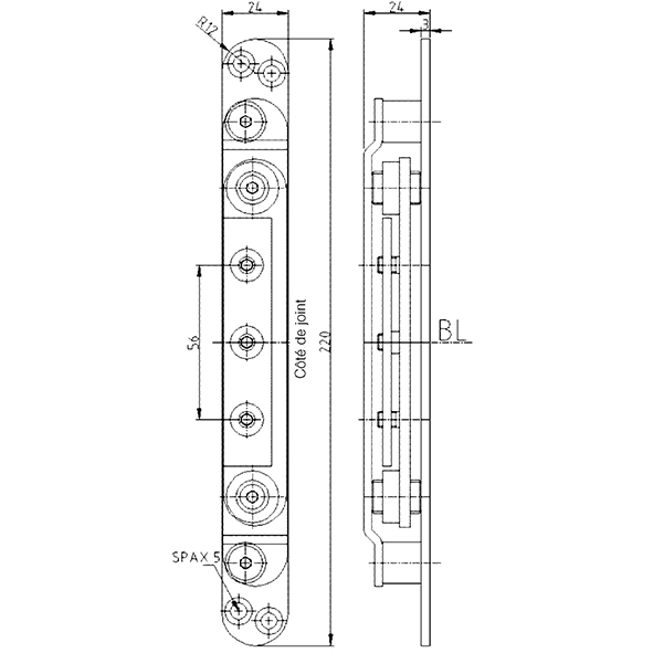 Châssis acier, plaque frontale inox brossé, montage complet, découpe de protection intégré, plage de réglage de 3 mm, plaque frontale massive, force portante avec 2 fiches env. 150 kg