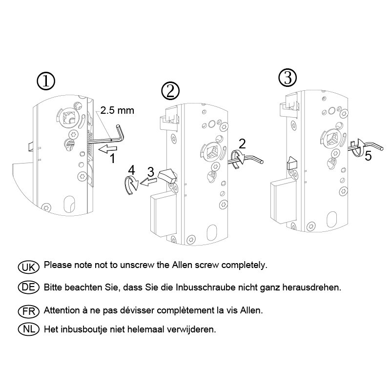 - Pêne de commande préréglé sur DIN droite, convertible en DIN gauche.