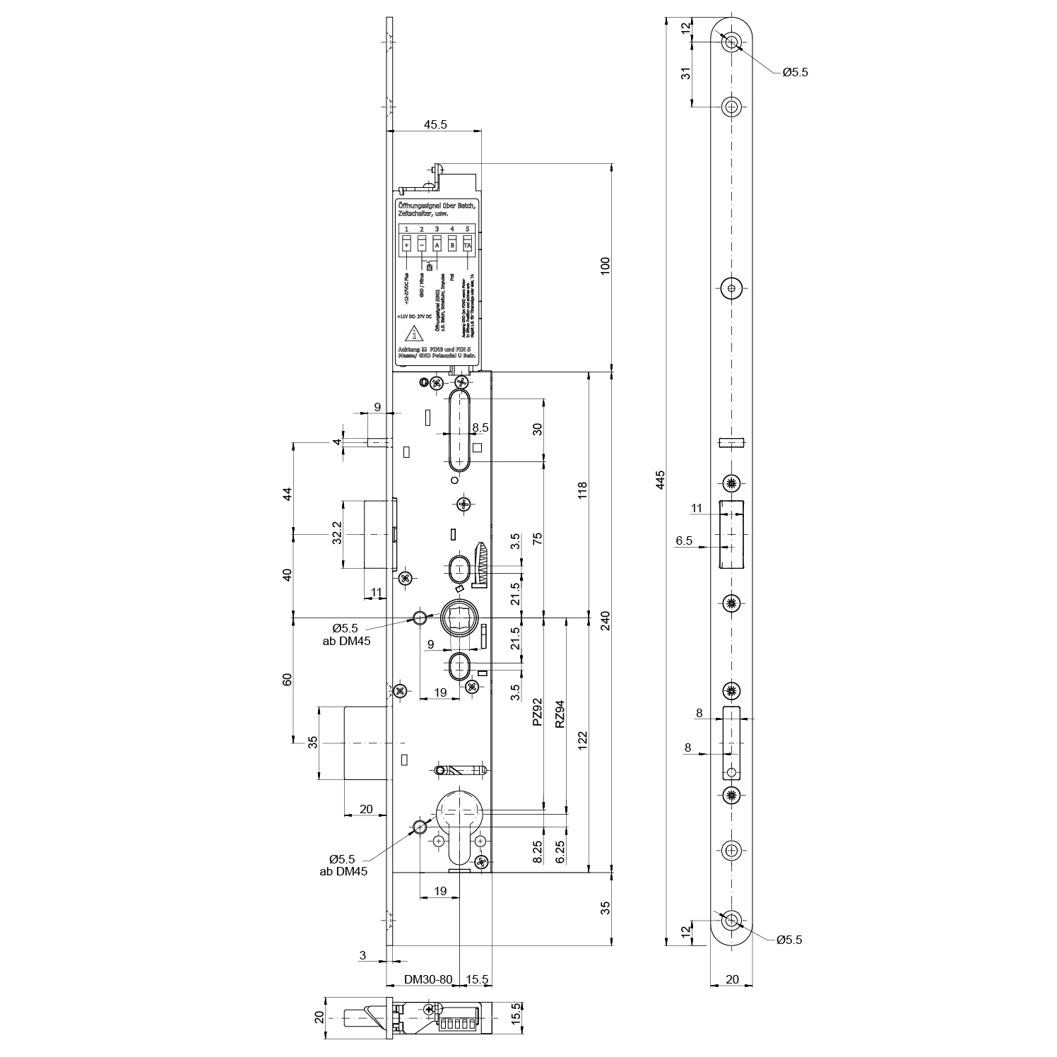 Unité moteur installée avec commande moteur intégrée pour le fonctionnement de base (ouvert/fermé). Avec sortie commutée lorsque la serrure est déverrouillée par le moteur. Par ex. pour afficher la position d'ouverture et le signal retour vers l'entraînement de porte électrique. Verrouillage 1 point avec 1 pêne dormant et 1 bec-de-cane pivotant bloqué (avec isolation phonique) Ouverture motorisée en douceur, même sous pression. Unité moteur installée avec commande moteur intégrée pour le fonctionnement de base (ouvert/fermé). Avec sortie commutée lorsque la serrure est déverrouillée par le moteur. Par ex. pour afficher la position d'ouverture et le signal retour vers l'entraînement de porte électrique.