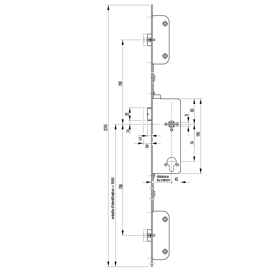 Avance du pêne 20 mm, avec fouillot spécial en 2 parties 9 mm