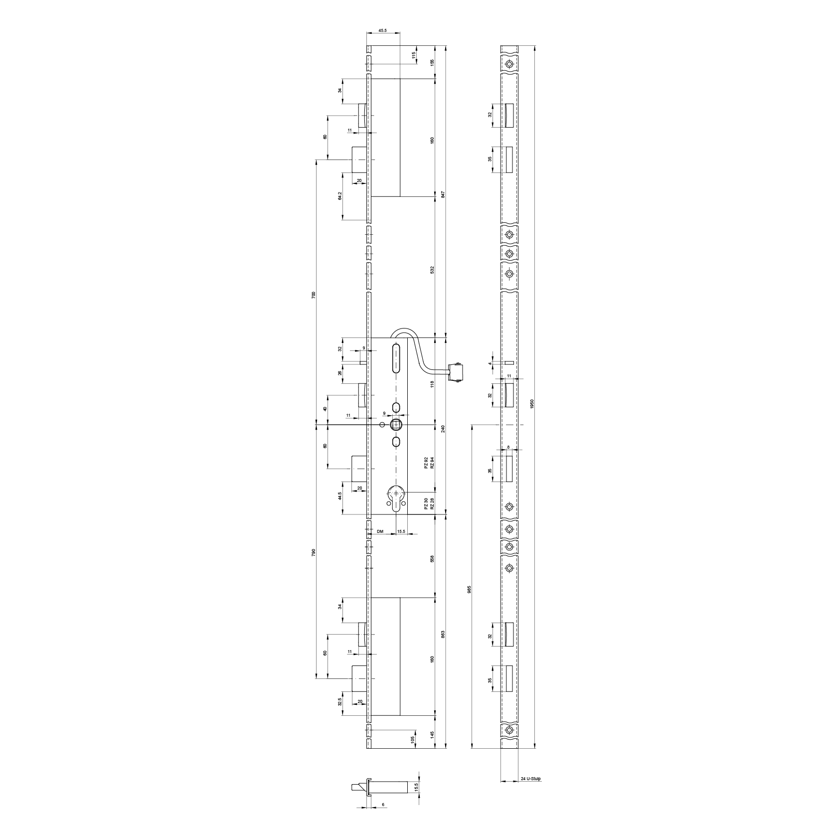 Ces serrures multipoints sont équipées de contacts de surveillance / signalisation. (Surveillance de l'état du pêne pilote, de la poignée, du pêne dormant et du cylindre). Le côté extérieur comporte également une poignée de porte. En état déverrouillé, la porte peut être ouverte des deux côtés. En état verrouillé, la porte ne peut pas être ouverte de l'extérieur, mais par contre elle peut toujours être ouverte de l'intérieur par l'actionnement de la poignée, de la garniture anti-panique ou de la barre anti-panique de poussée (fonction anti-panique) ce qui génère le rappel des 3 pênes longs et la libération des 3 becs de cane pivotants. Lorsque la porte ferme, la serrure verrouille automatiquement (autoverrouillage). La tige carrée (fouillot) est divisée en deux parties pour une fonction anti-panique B. Cette fonction anti-panique convient pour des portes qui doivent parfois également être ouvertes de l'extérieur (fonction jour). La fonction jour peut être activée via le cylindre par un tour de clé dans le sens d'ouverture jusqu'au butoir, ce qui génère l'embrayage de la poignée extérieure. Lorsque l'on ferme la porte, la serrure verrouille automatiquement (autoverrouillage).