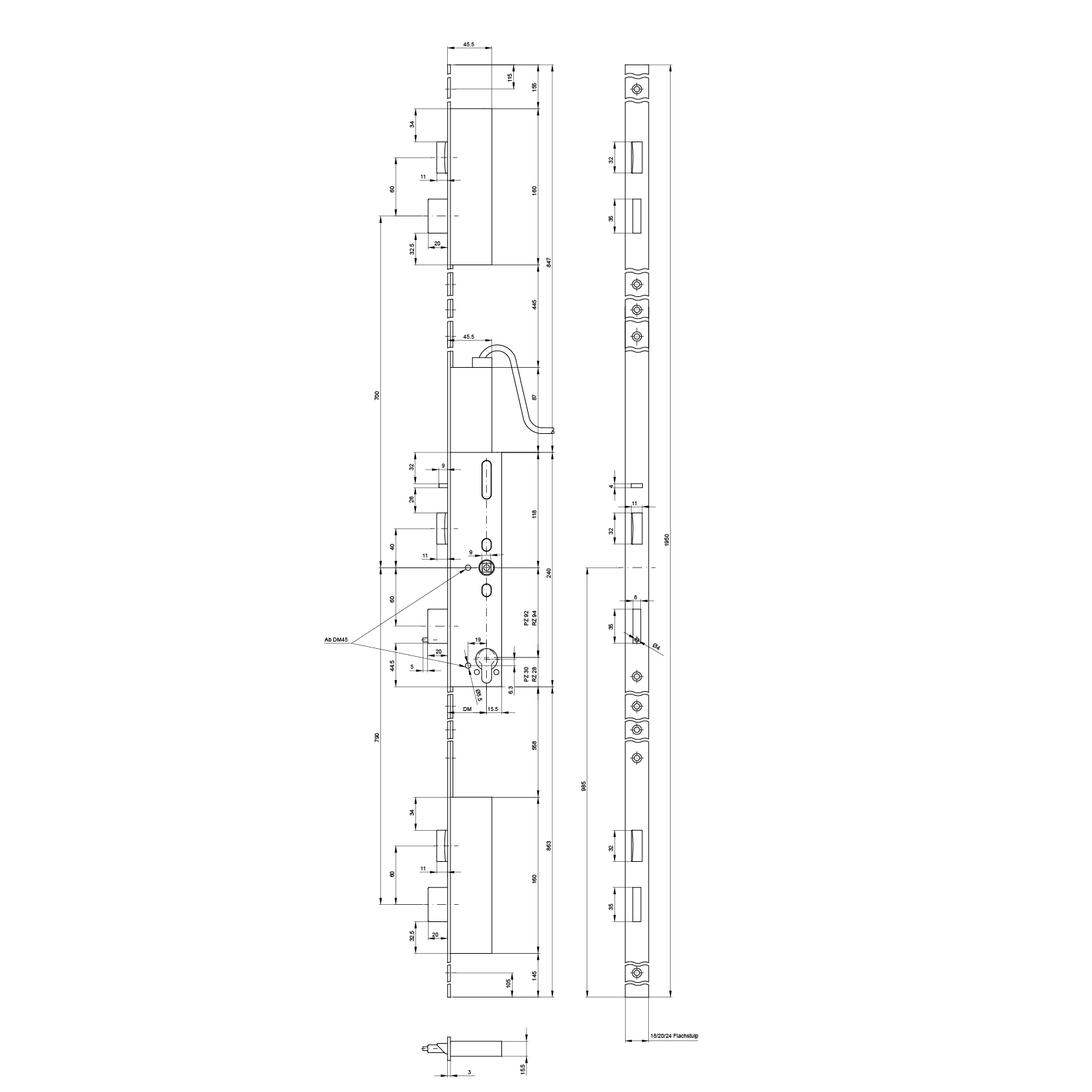 La serrure multipoints mFlipLock e-access à commande de poignée est équipée d'un fouillot en deux parties, de sorte que la poignée intérieure soit embrayée et la poignée extérieure débrayée. Les deux côtés sont en règle générale équipés d'une garniture et d'une poignée. Lorsque la porte est verrouillée, elle peut être ouverte à tout moment de l'intérieur pour quitter le local par l'actionnement de la poignée intérieure. Un tel actionnement entraîne le rappel des 3 pênes longs ainsi que la libération des 3 becs de cane pivotants (fonction anti-panique, s'ouvrant vers l'intérieur). Lors du déverrouillage de l'extérieur via une impulsion électrique, une empreinte digitale, un bouton, un badge ou une horloge, la poignée extérieure s'embraye et le pêne dormant rentre partiellement jusqu'aux derniers 5 mm. La poignée permet ensuite de libérer les becs de cane pivotants et de déverrouiller complètement la serrure. Lorsque la porte est verrouillée, une ouverture d'urgence de l'extérieur est à tout moment possible via le cylindre de fermeture. Lorsque l'on ferme la porte, la serrure verrouille automatiquement (autoverrouillage). Cette serrure est toujours utilisée en combinaison avec une commande d'évaluation (AWS), destinée à pouvoir évaluer tous les contacts de la serrure motorisée mFlipLock e- access. La serrure motorisée peut ainsi être ouverte, fermée, commutée sur la fonction jour ou complètement verrouillée à des horaires prédéfinis. La tension d'alimentation pour la serrure motorisée est également fournie par la commande d'évaluation AWS. En mode de cas d'urgence (panne de courant / déclenchement par le centrale d'alerte incendie), la serrure en état déverrouillé est automatiquement verrouillée par l'intermédiaire d'un condensateur tampon intégré. Sur l'entrée de verrouillage séparée (verrouillé), tous les signaux entrants sont coupés, de sorte que la serrure motorisée passe automatiquement en mode de verrouillage. Uniquement disponible en combinaison avec un verrouillage du vantail fixe anti-panique. Celui-ci permet toujours d'ouvrir la porte par l'actionnement de la garniture anti-panique ou de la barre anti-panique de poussée, même lorsque la serrure du vantail de service est verrouillée (fonction anti-panique). Verrouillage automatique lors de la fermeture de la porte par déclenchement du verrou de commutation.