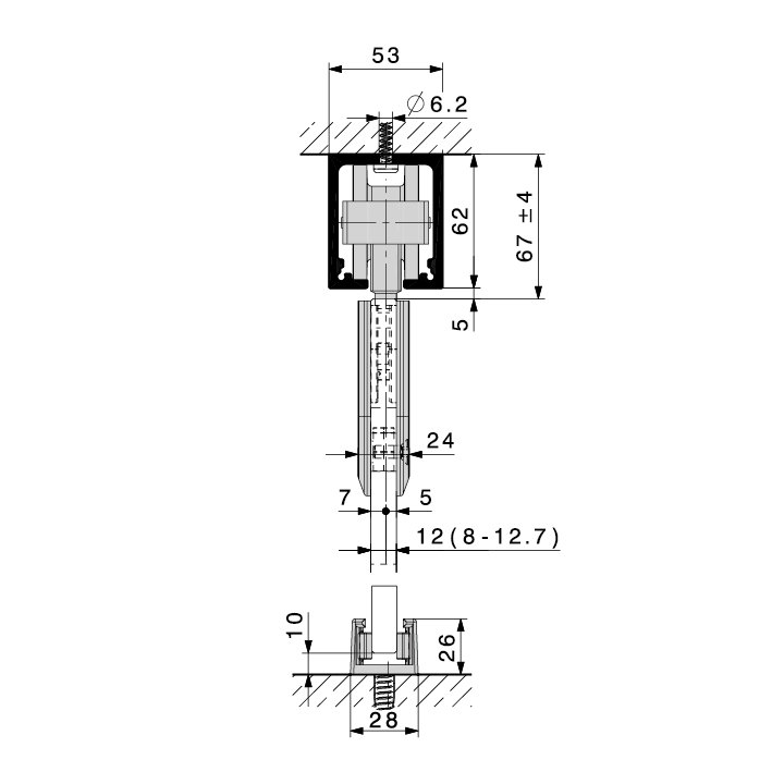 - Épaisseur de porte verre ESG 8, 10, 12 et 12,7 mm,