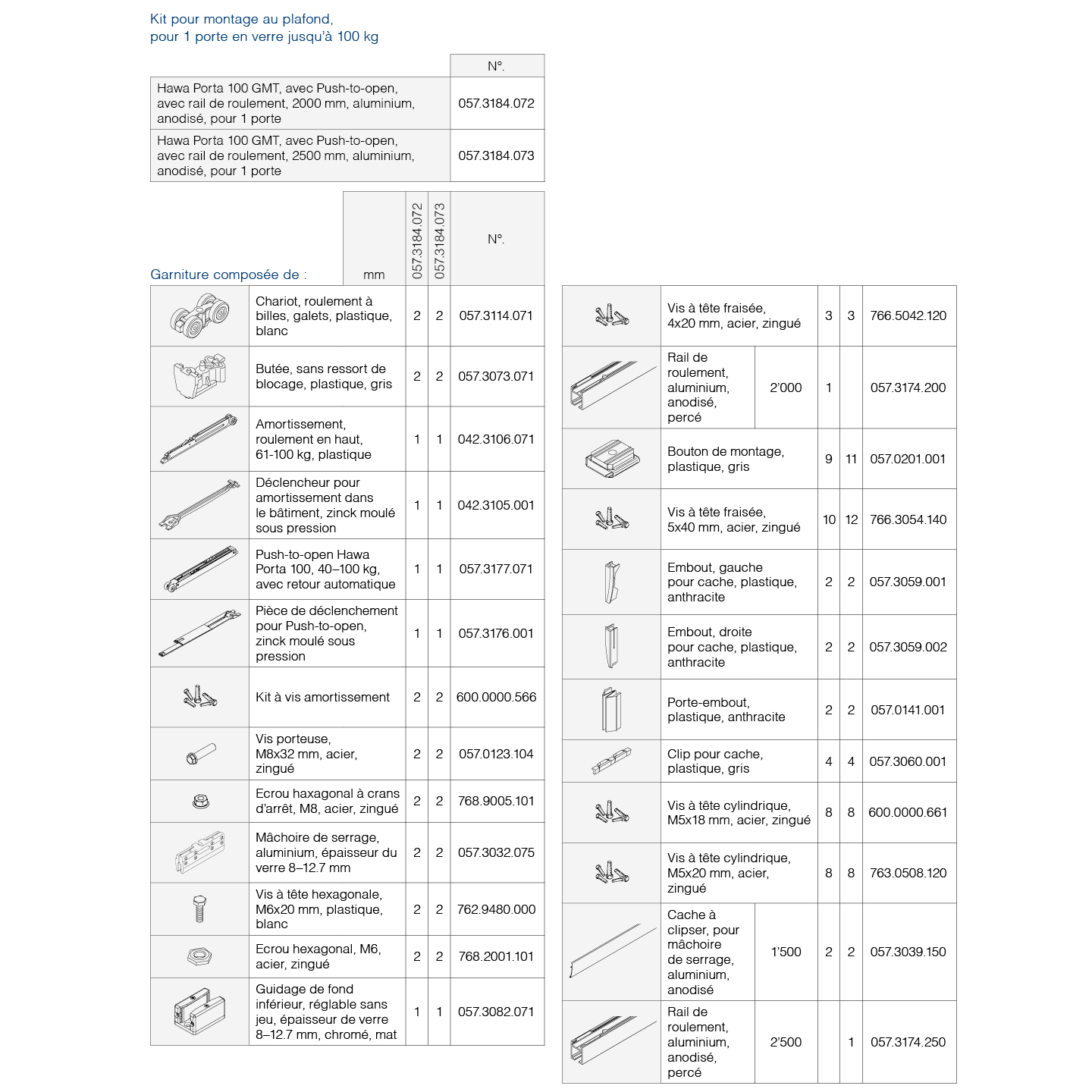 Ferrure pour porte coulissante en verre, HAWA Porta 100/GMT Pocket
