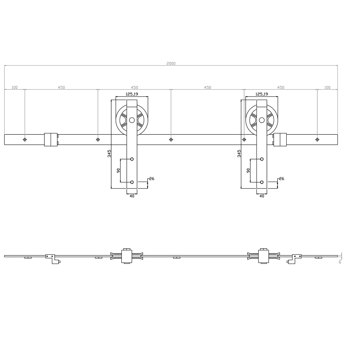 - 2 galets de roulement Ø 125mm et 340mm de hauteur totale