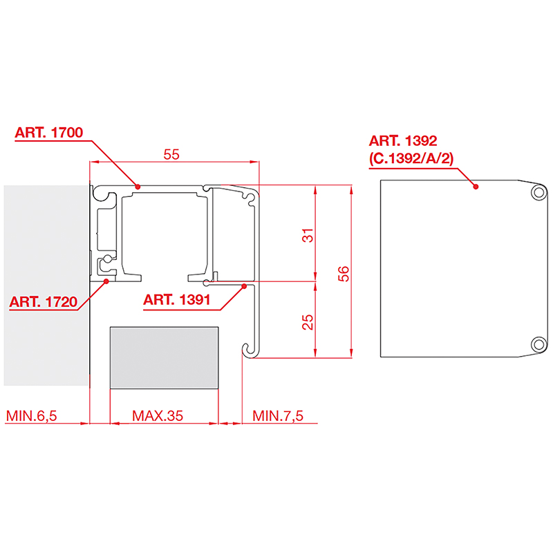 Rail de roulement 1700 avec profilé de support mural 1720 et profilé de recouvrement 1391