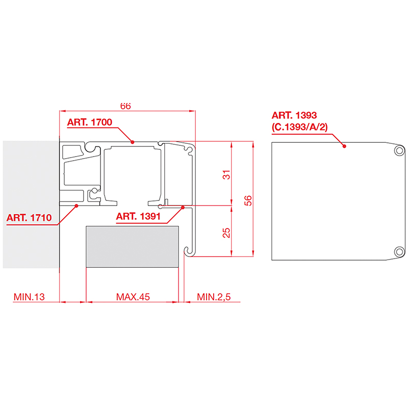 Rail de roulement 1700 avec profilé de support mural 1710 et profilé de recouvrement 1391