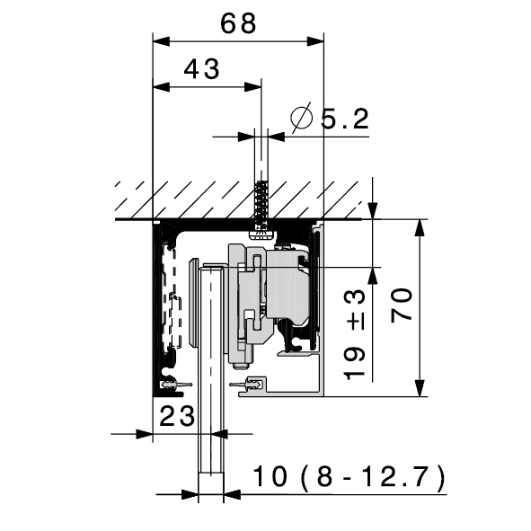 Glissière pour montage au plafond HAWA, sans vitrage fixe,pour ferrures pour Purolino-PLUS 80