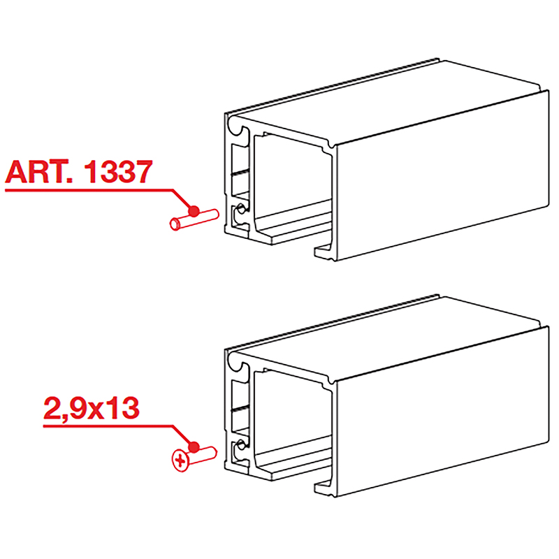 .- Alternativement, il est également possible d'utiliser des vis à tôle 2,9x13.