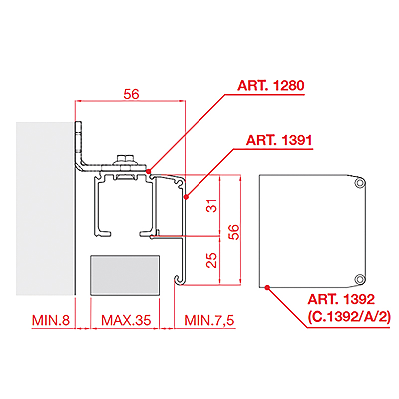 Rail de roulement type 1280 ou 1700 avec profilé de fixation murale 1710
