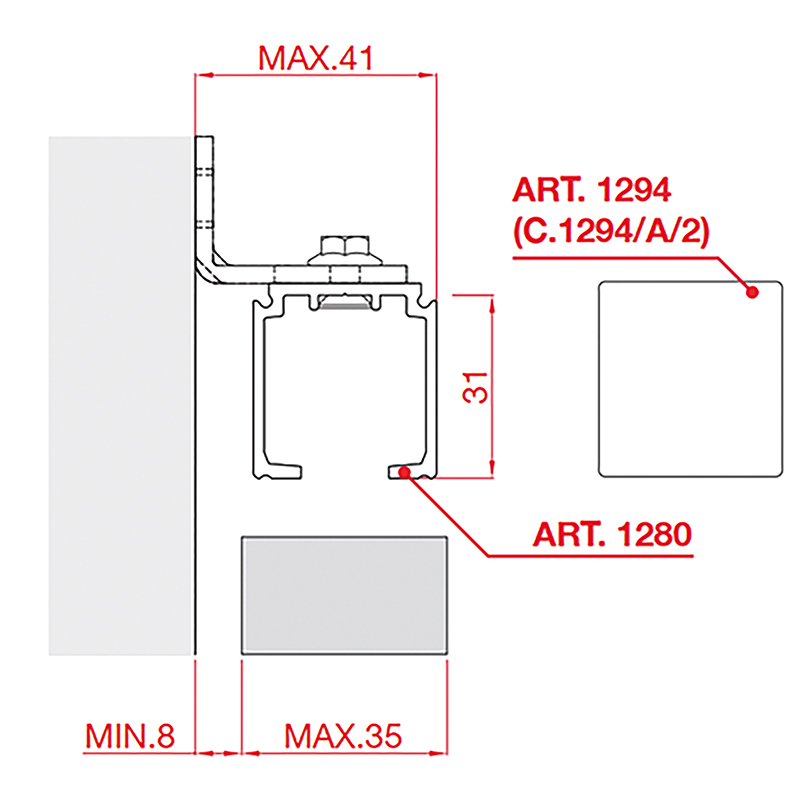 Rail de roulement type 1280 ou 1700 avec profilé de fixation murale 1710