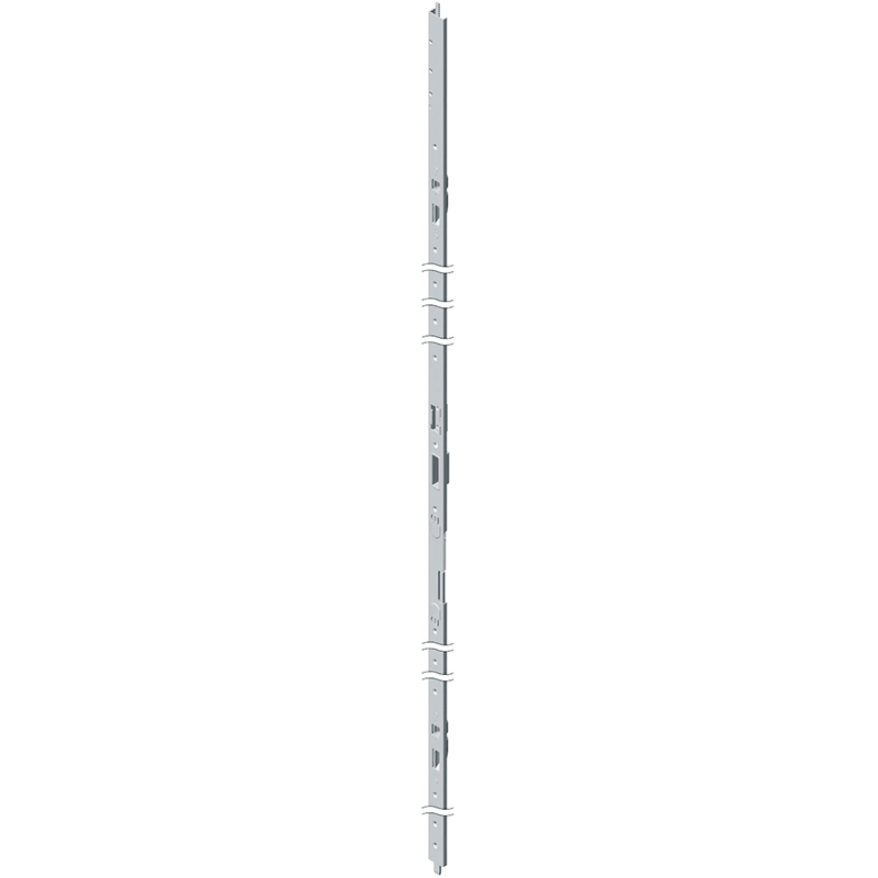 Contre-crémone pour bois, galvanisée claire, avec des pênes de verrouillage, 20 mm vers le haut et vers le bas, préparé pour gâches électriques, avec réglage Q et revêtement arrière, adaptée aux serrures multipoints KFV
