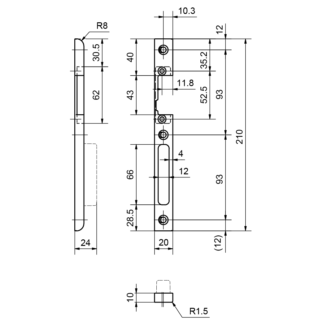 gâche à capuchon en acier inox comme gâche principale pour bec-de-cane / pêne dormant et gâches électriques, appropriée pour les gâches électriques de la série GLUTZ gâche électrique compacte A5xxx et gâche électrique protection contre le feu FT5xx, pour les serrures à mortaiser et multipoint Glutz, par la ténacité du matériau et la construction sophistiquée du vissage en biais invisible, en atteint des forces de résistance les plus hautes contre la déformation et l'arrachage, avec 3 vis spéciales pour vissage oblique invisible et 3 vis à bois à tête fraisée