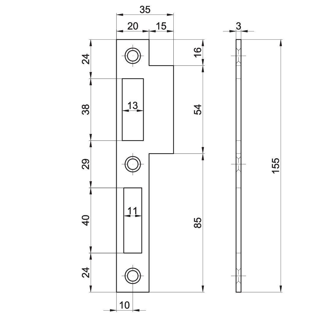 Gâche à platte MSL pour serrure à mortaiser 1701