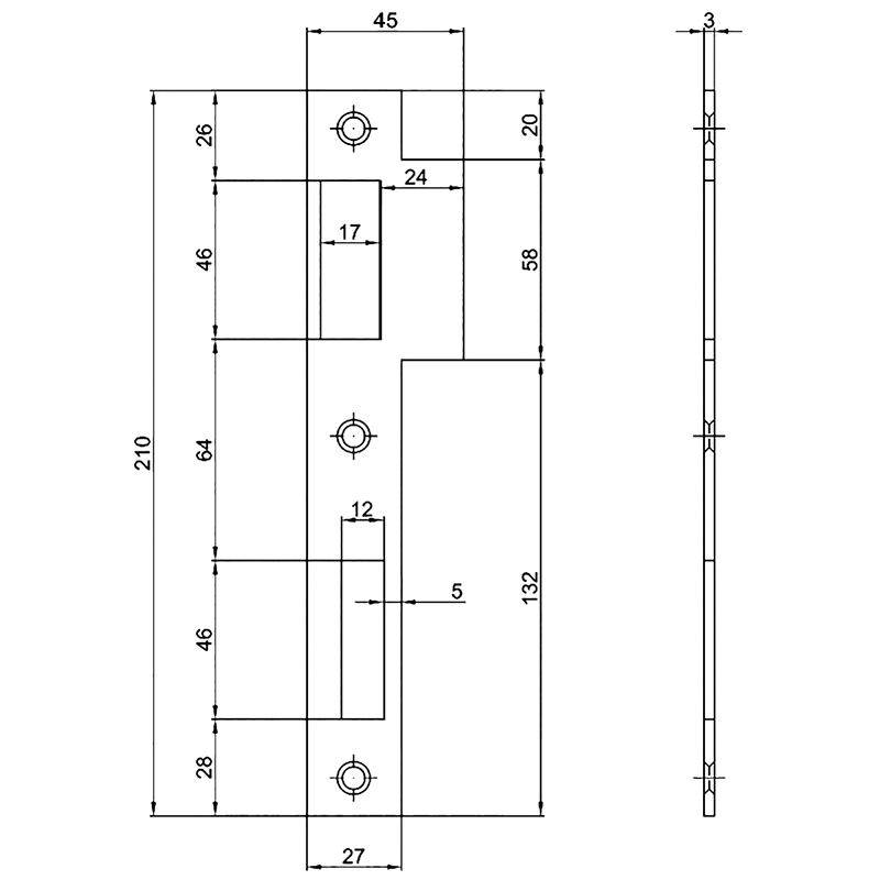 Gâche à platte MSL pour serrure à mortaiser Robusta 1303