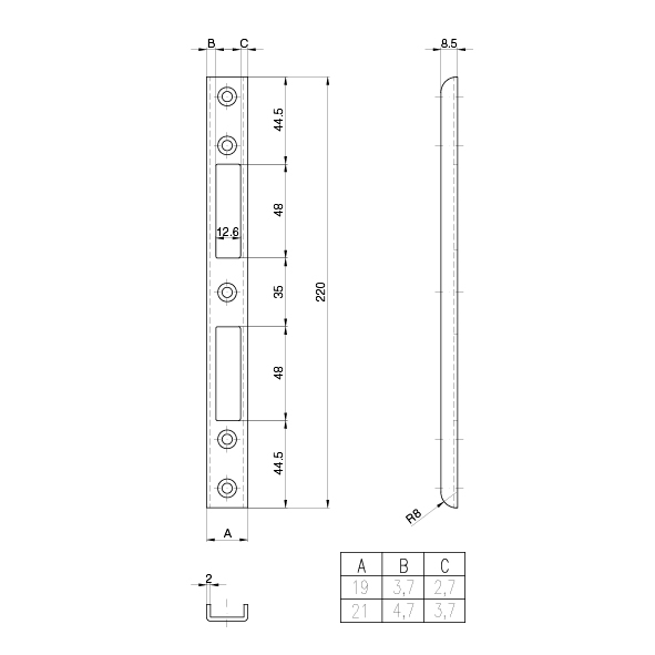 Acier inoxydable, avec découpe pour pêne dormant et pêne demi-tour, utilisable universellement DIN droite et DIN gauche, sans vis