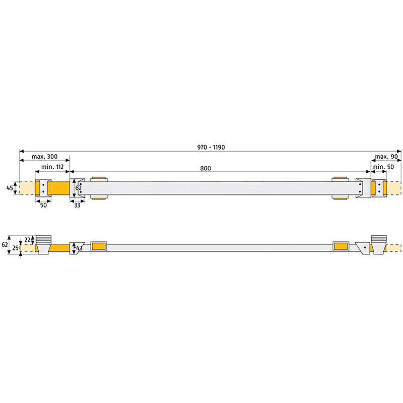 - 800 x 45 x 43 mm