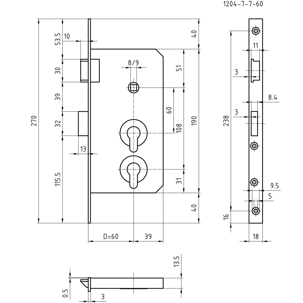 avec fouillot autoserrant, avec bec-de-cane en acier, avec verrou en acier 1 tour, avance de verrou 13 mm, avec fonction de levier, pour grands magasin et grands blocs résidentiels ainsi pour bâtiments avec accès des services municipaux, sans gâche